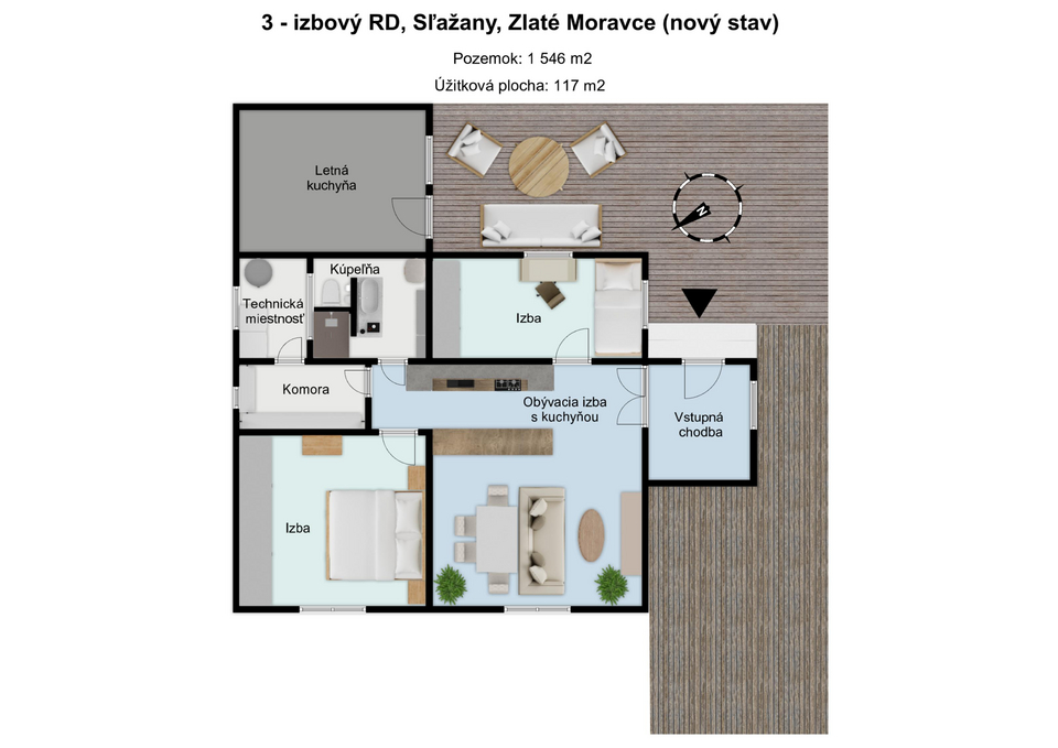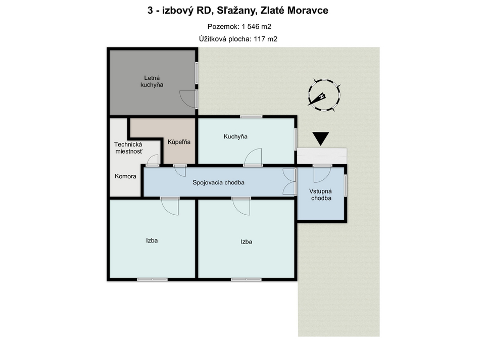 Trojizbový dom + letná kuchyňa: Dom má 3 izby a samostatnú miestnosť prístupnú z dvora – letnú kuchyňu, ktorú možno prerobiť na terasu so záhradnou kuchyňou alebo ďalší obytný priestor podľa vašich predstáv.